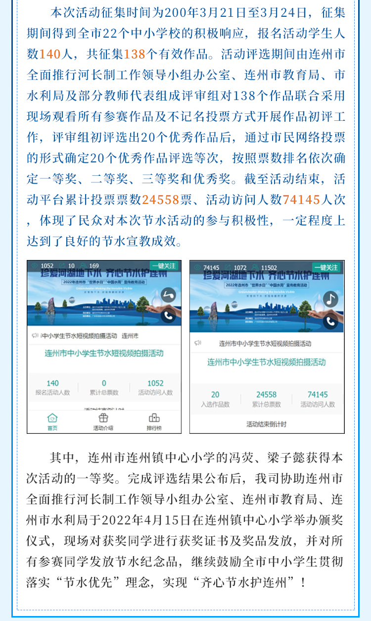 節(jié)水優(yōu)先|連州市“珍愛(ài)河湖地下水?齊心節(jié)水護(hù)連州”中小學(xué)生節(jié)水短視頻征集大賽圓滿落幕